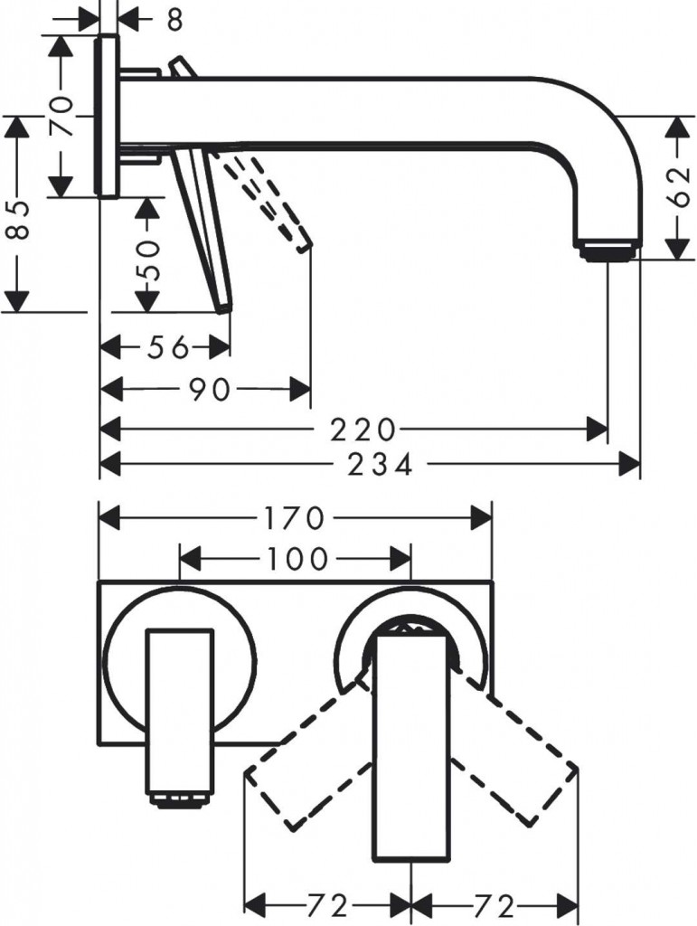 - ovládací páku lze umístit vpravo nebo vlevo, závisí na instalaci tělesa