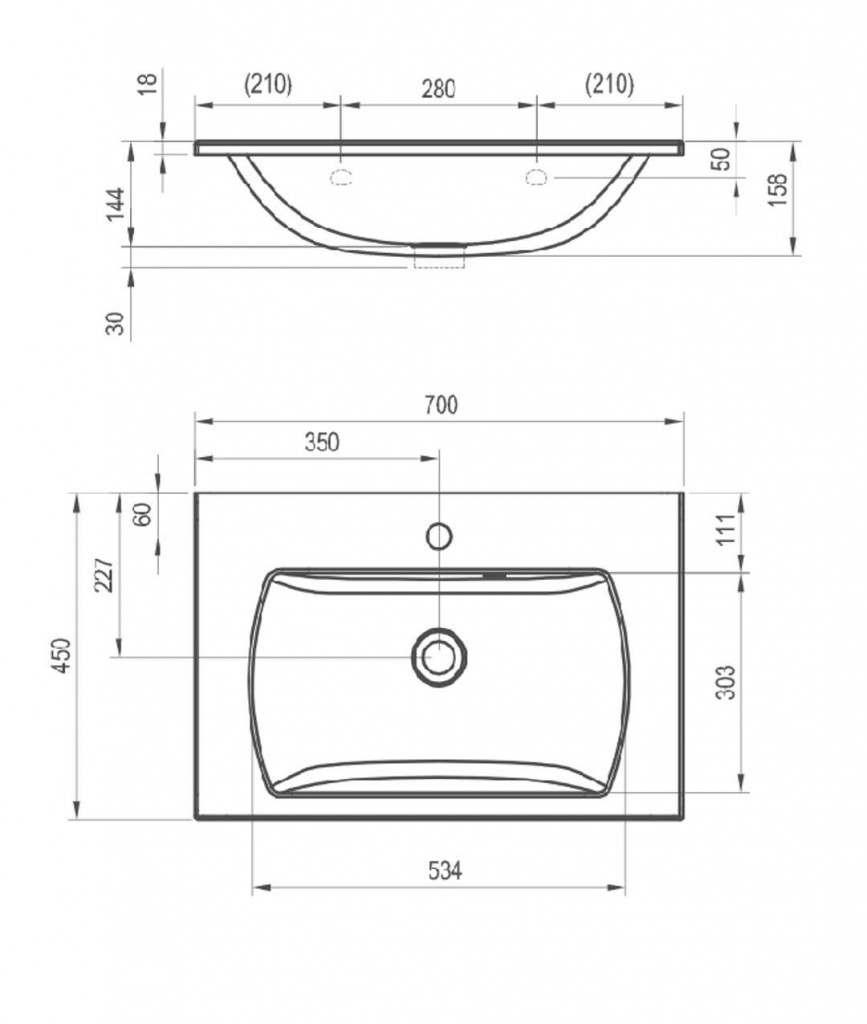 Umyvadlová výpusť, baterie ani sifon nejsou součástí balení.