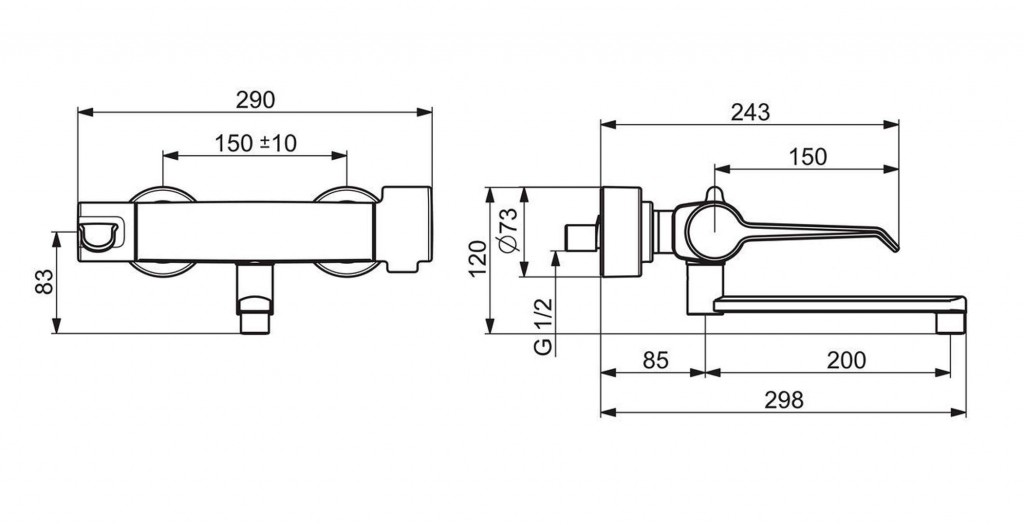 Termostatická nástěnná umyvadlová baterie s otočným výtokem