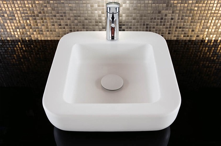 Cocktail umyvadlo čtvercové 45 cm, na desku, s otvorem pro baterii, bez přepadu.