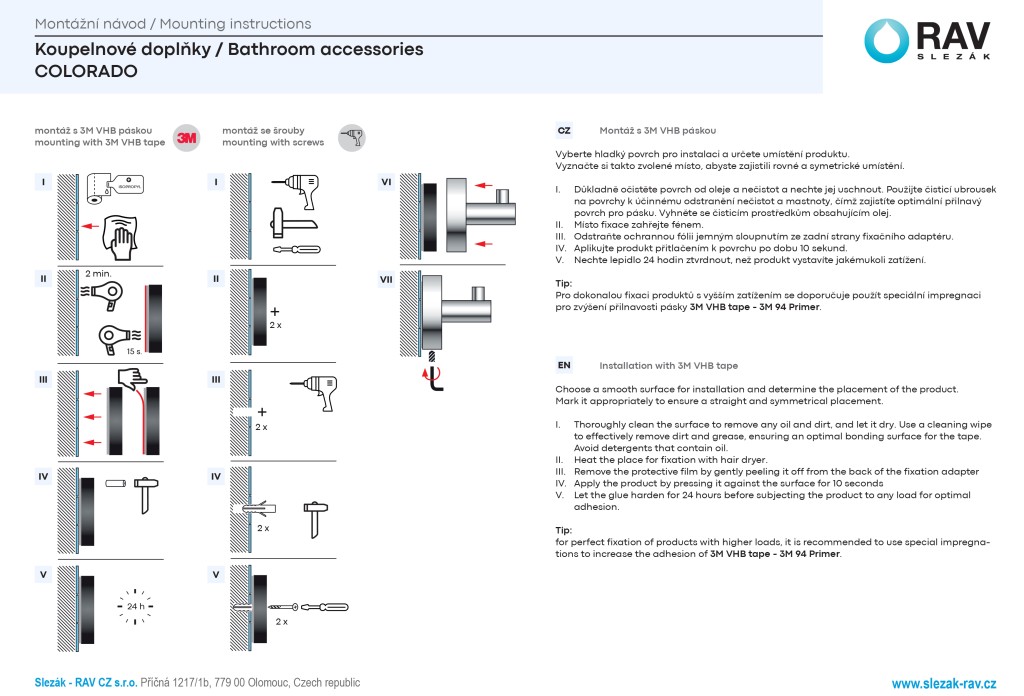 - - kotvící sada v balení obsahuje díly pro klasické vrtání i možnost pevného lepení pomocí technologie 3M.