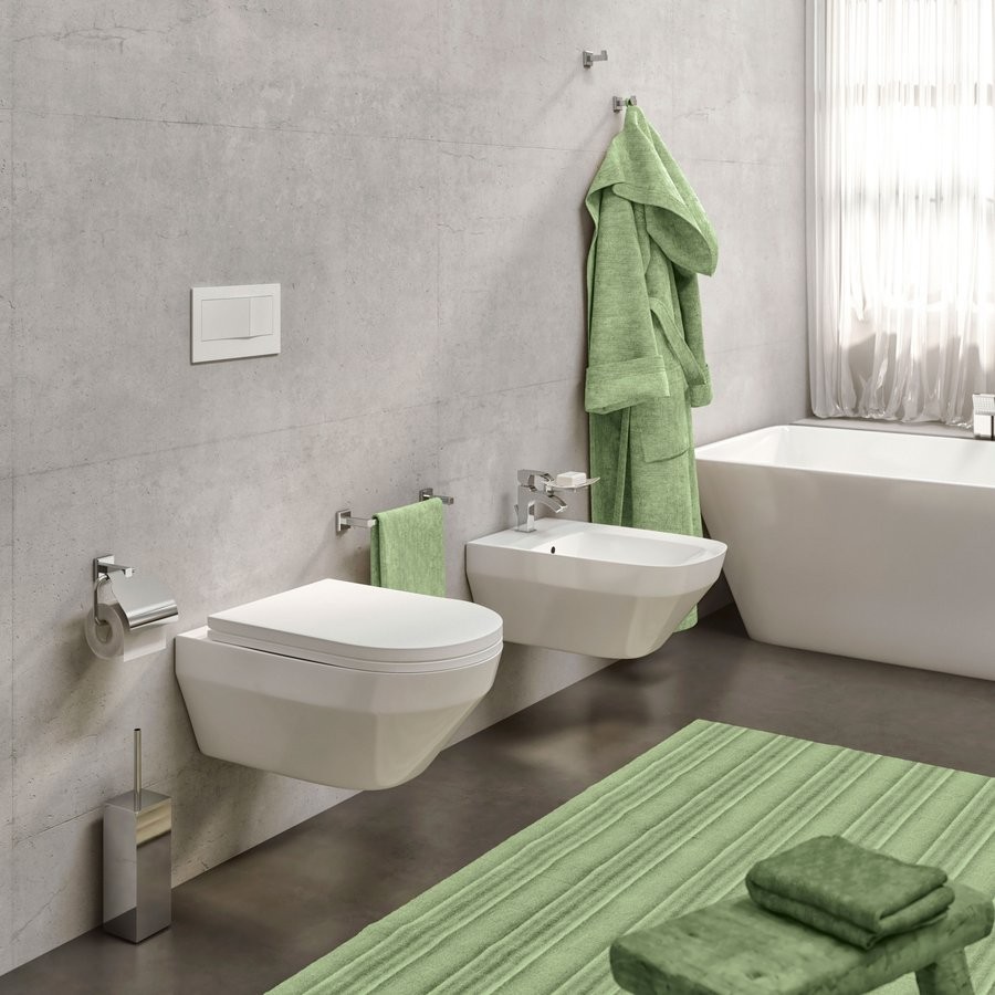 Malý hranatý úchyt na stěnu a štíhlé hranaté profily charakterizují sérii COLORADO. Doplňky lze na stěnu přivrtat nebo nalepit.