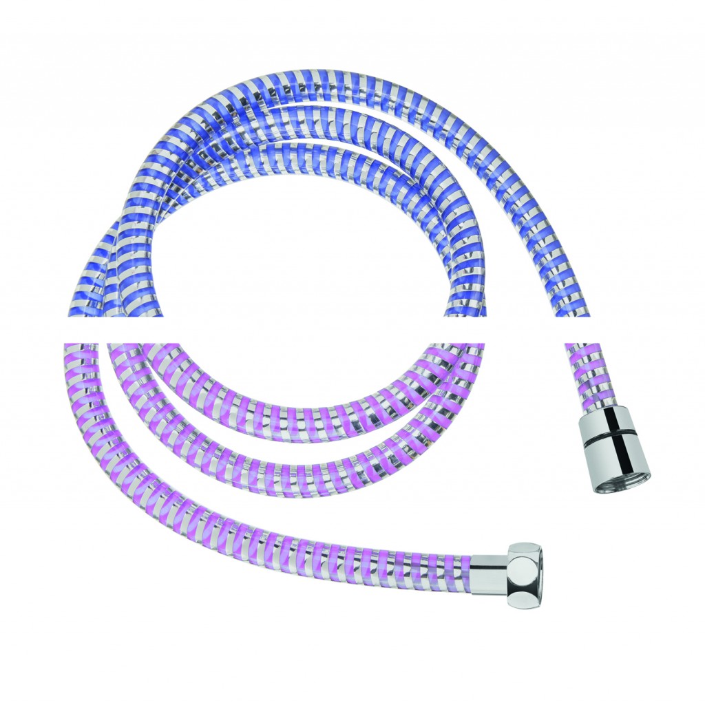 Sprchová plastová hadice měnící barvu.