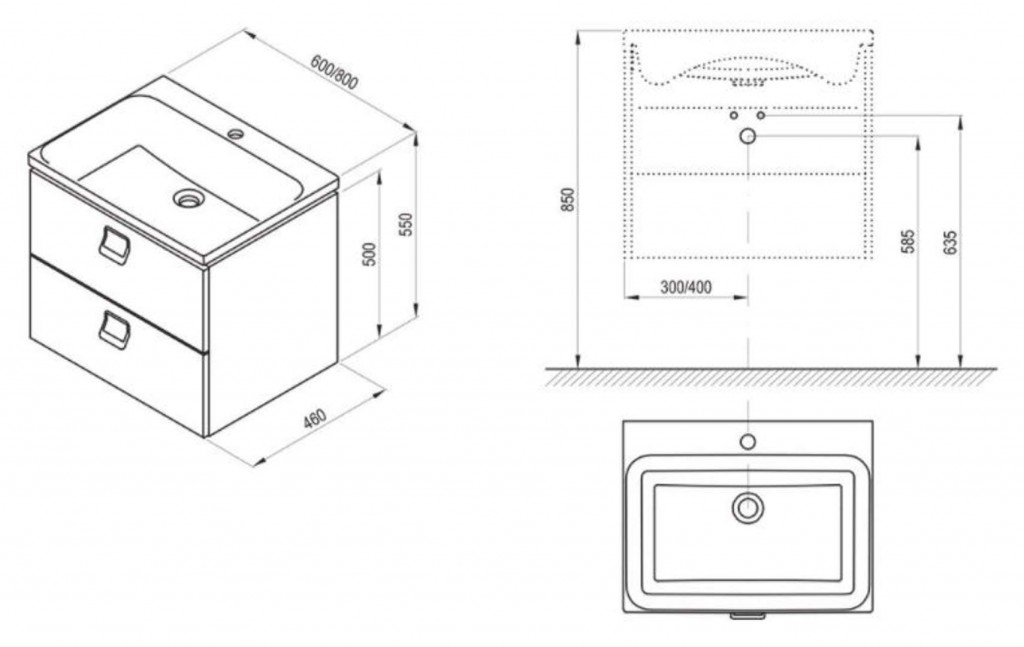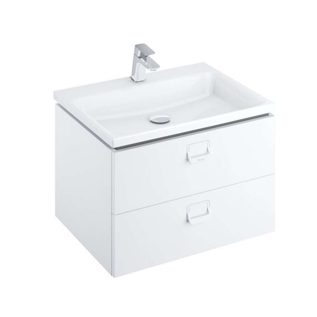 Závěsnou skříňku lze kombinovat se zapuštěným keramickým umyvadlem Comfort 800 a umyvadlovým sifonem s pevnou výpustí.