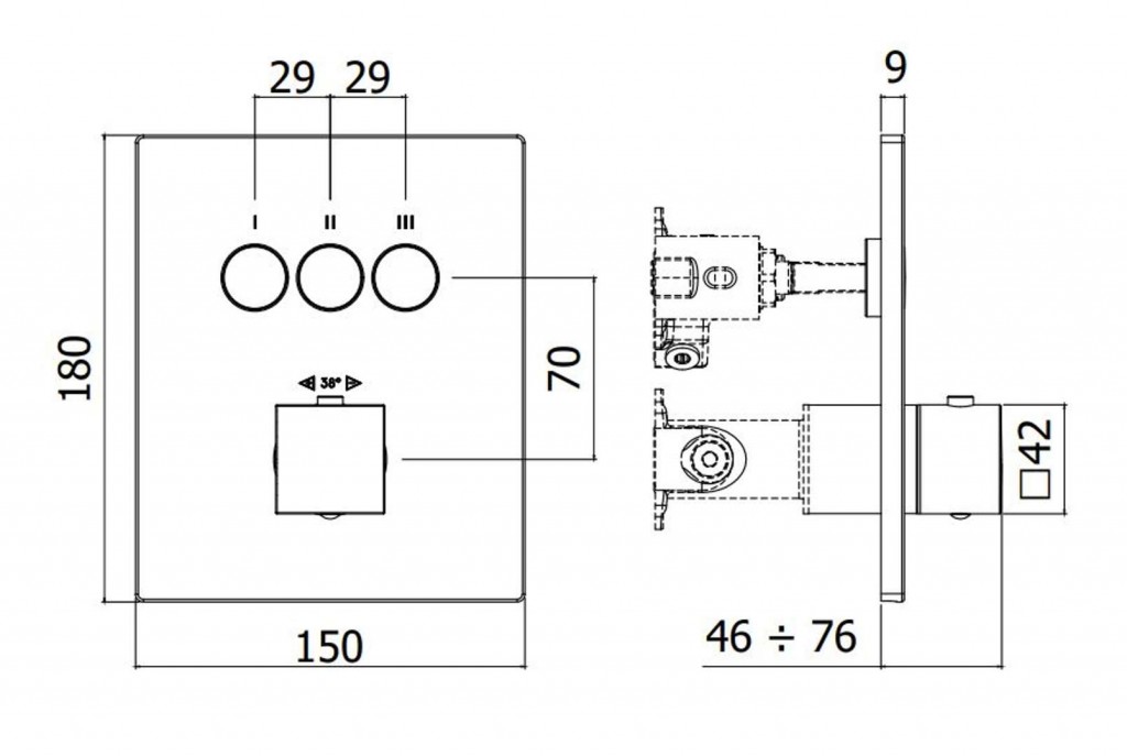 Podomítková termostatická baterie, bez tělesa