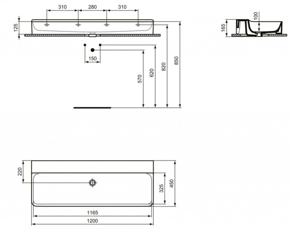 Obdélníkové dvojumyvadlo na desku / skříňku