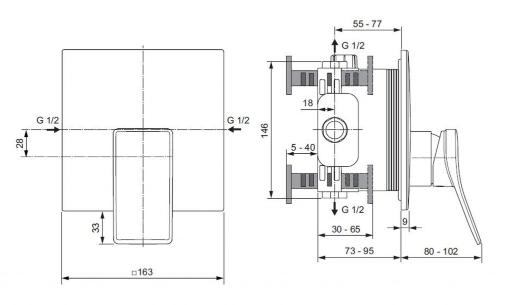 Podomítkové těleso není součástí dodávky, je nutné dokoupit zvlášť.