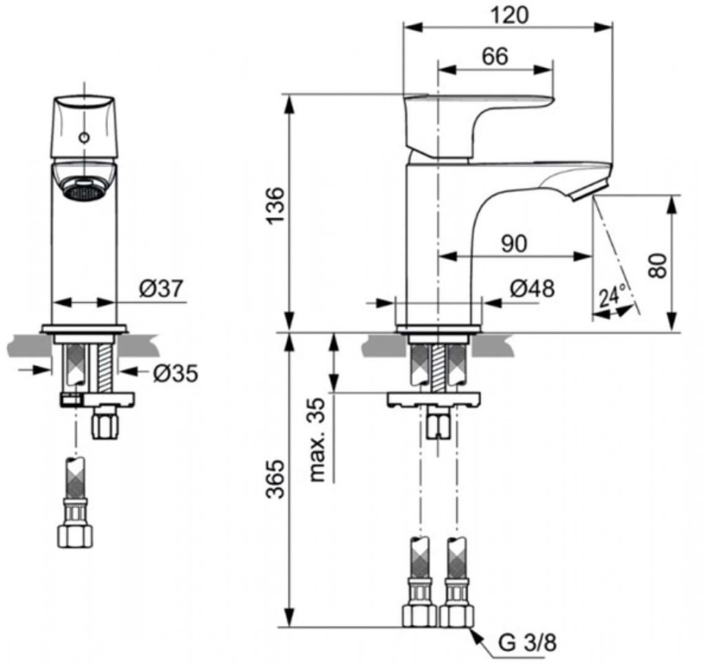 - BlueStart technologie - šetří energii a vodu, v pozici páky uprostřed protéká studená voda