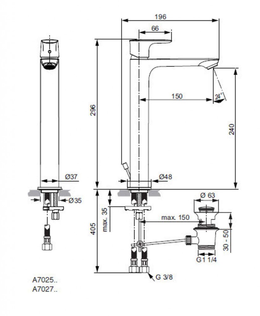 Páková umyvadlová baterie Slim s vysokým vývodem
