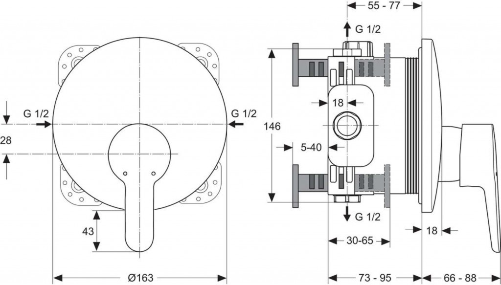 Podomítková sprchová baterie Connect Blue, bez tělesa