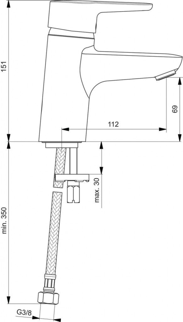 - připojení flexibilní hadičky G 3/8 (bez niklu a olova)