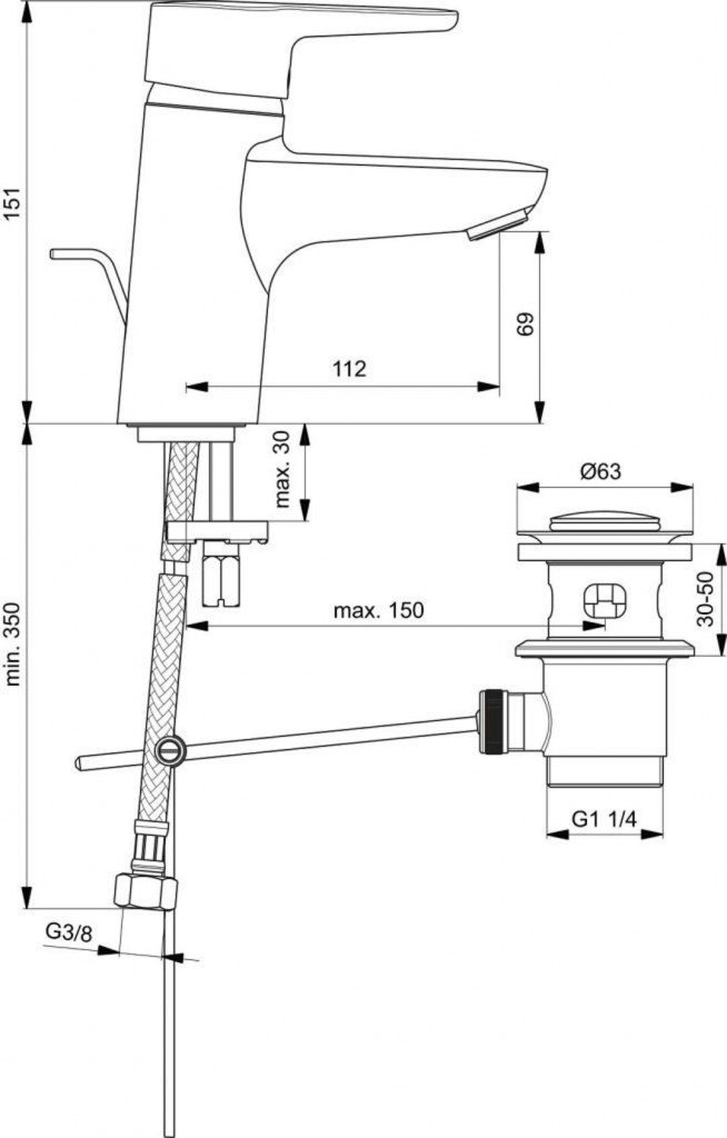 - připojení flexibilní hadičky G 3/8 (bez niklu a olova)