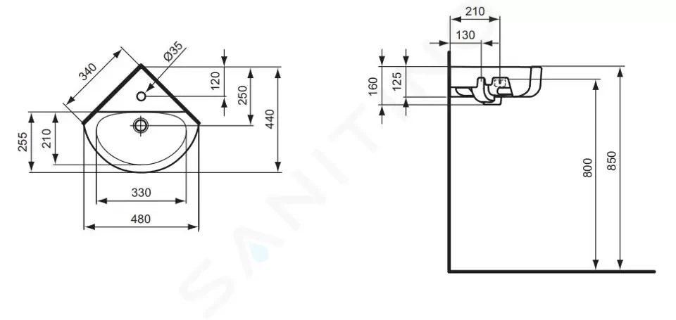 Rohové umývátko Connect Arc