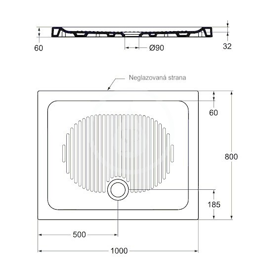 výška: 60 mm, délka: 1000 mm, šířka: 800 mm
