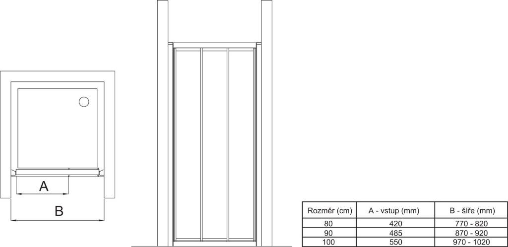Connect posuvné dveře (3-dílné) - do niky nebo pro kombinaci s pevnou stěnou pro vytvoření sprchového koutu.