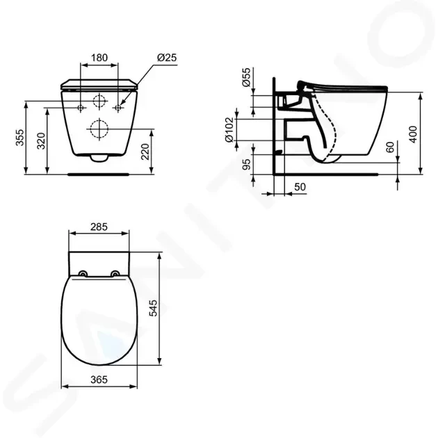 Klozety s AquaBlade® technologií nelze osadit na instalační moduly s odsáváním.