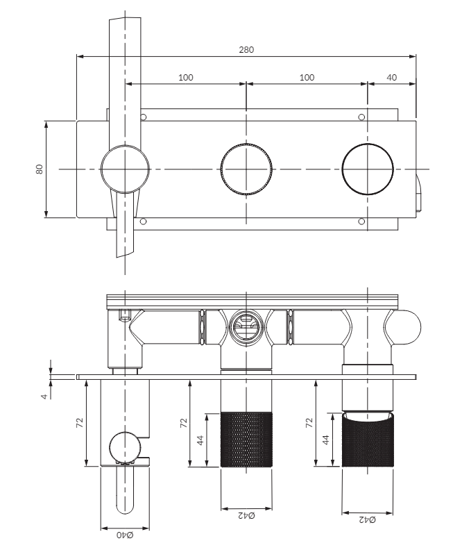 - dva vstupy (pro horkou a studenou vodu): 1/2", dva výstupy smíšené vody: 1/2"