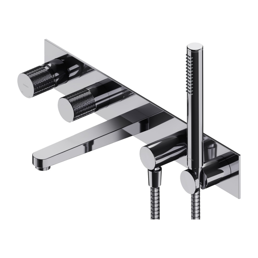 Podomítková 5-otvorová vanová baterie OMNIRES CONTOUR je vyrobena z vysoce kvalitní mosazi třídy A a je vybavena nejkvalitnější keramickou hlavicí, která zajišťuje plynulou a přesnou regulaci proudu vody. Perlátor s technologií AIR WATER provzdušňuje vodu, takže je měkká a příjemná na dotek. Silikonové výstupky typu EASY CLEAN /umožňují vyčistit výrobek od usazenin vodního kamene jednoduchým a rychlým otřením rukou/.