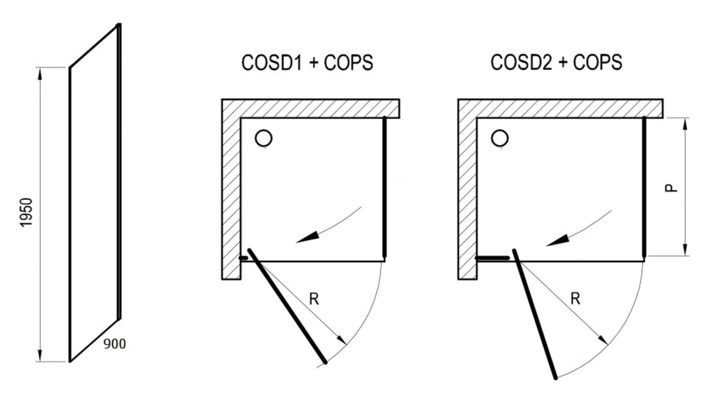- pro kombinaci se sprchovými dveřmi COSD1 nebo COSD2