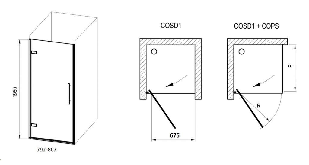 - vhodné do niky nebo s pevnou boční stěnou COPS