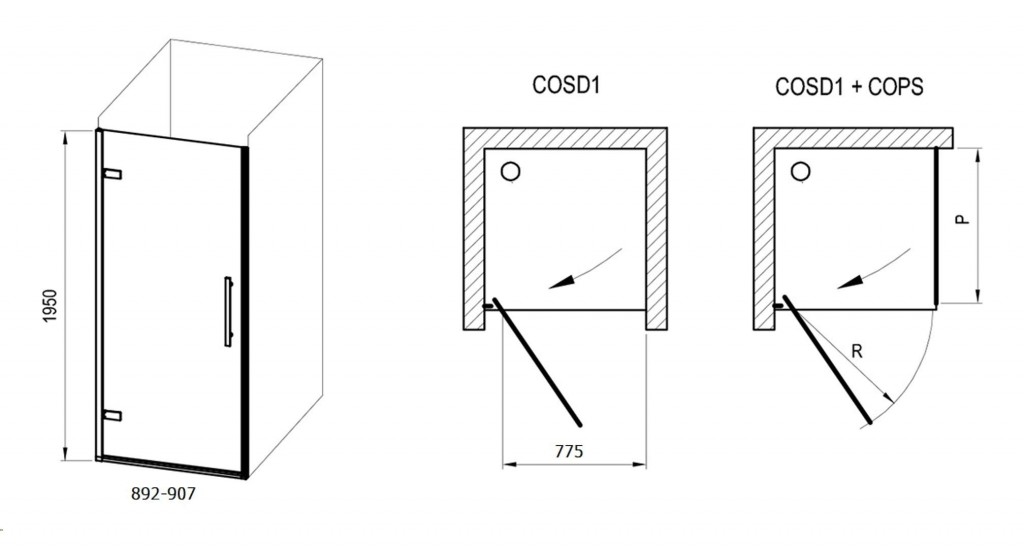 - vhodné do niky nebo s pevnou boční stěnou COPS