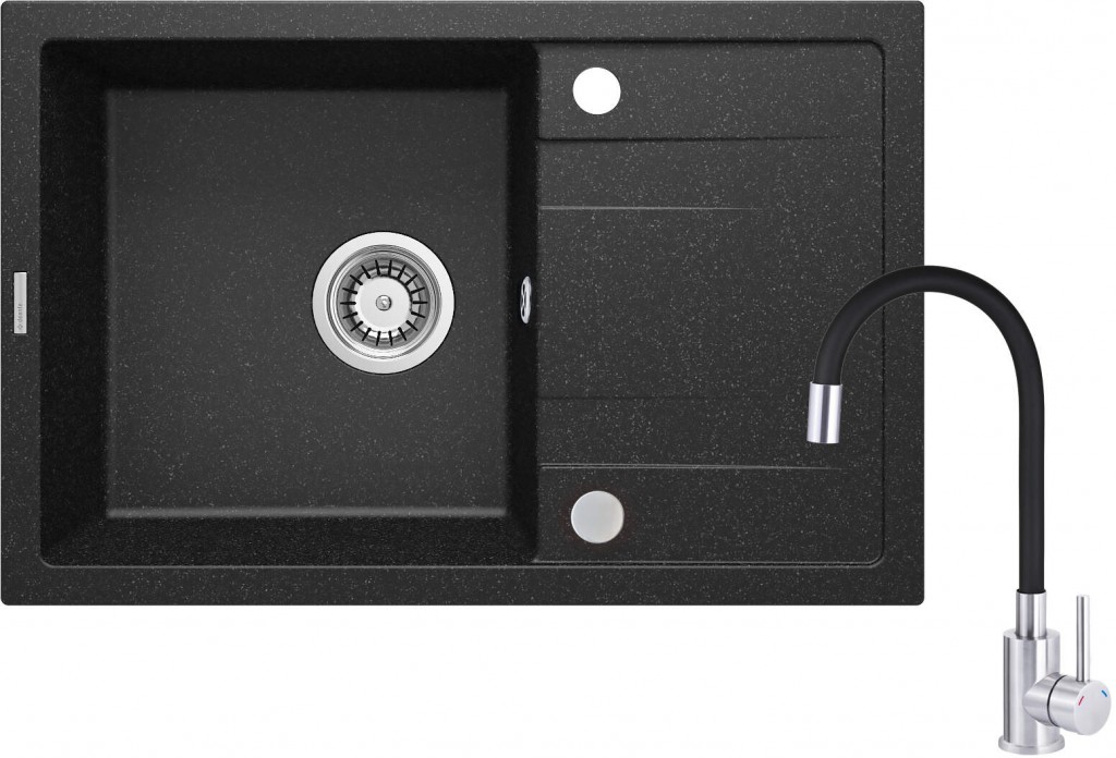 Granitový dřez Deante se stojánkovou baterií je vyroben z nejkvalitnějšího přírodního granitového kompozitu. Vyznačuje se odolností proti nárazu, vysoké teplotě a náhlým změnám, v souladu s evropskou normou PN-EN 13310. Navíc je obohacena o hydrofobní vrstvu, která usnadňuje stékání jednotlivých kapek. Estetický povrch nebledne a neztrácí lesk. Praktický 1-miskový dřez s odkapávačem je perfektním řešením v malých kuchyních a studiových bytech s kuchyňským koutem. Přepad v komoře chrání pracovní desku a kuchyň před zatopením. Přebytečná voda je efektivně odváděna do sifonu.