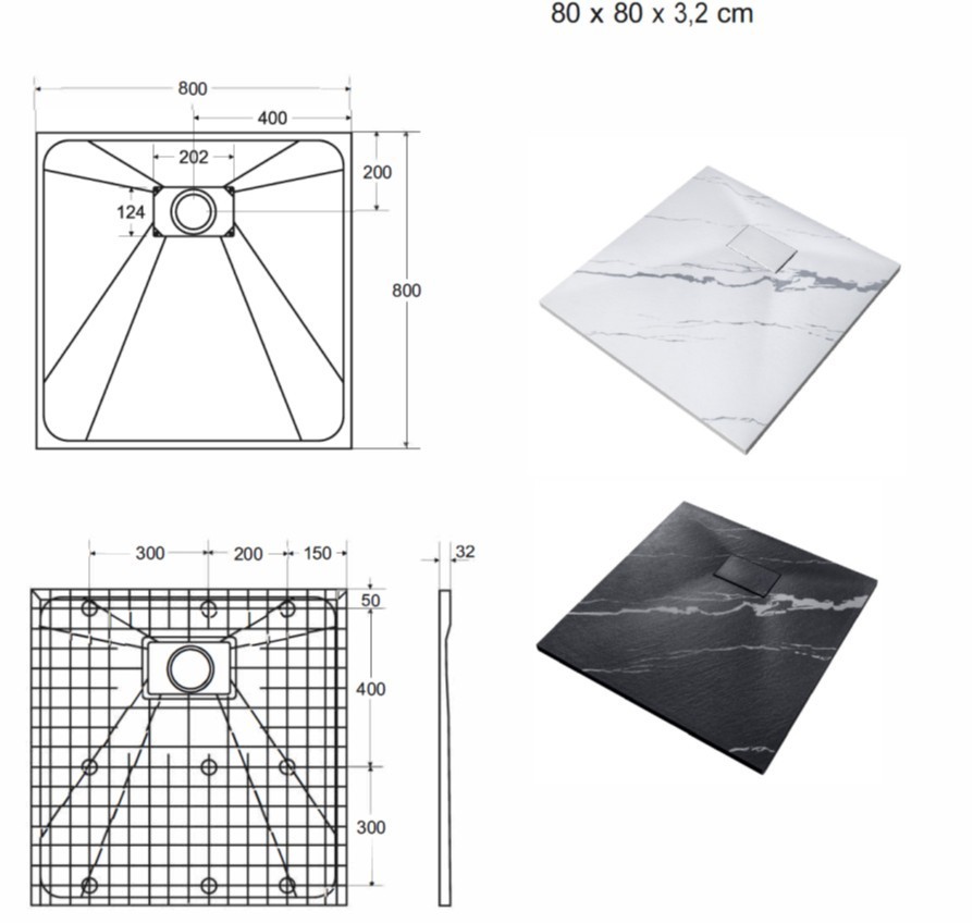 Rozměry a parametry čtvercové vaničky VEXO MARBLE: