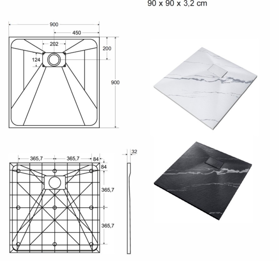 Elegantní ultratenká sprchová vanička VEXO MARBLE ČERNÁ je vyrobena ze speciálního SMC materiálu. Dodává se včetně sifonu ale bez nožiček. Krytka sifonu v barvě vaničky je součástí balení.