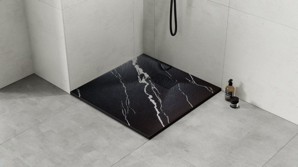 Sprchová vanička VEXO MARBLE ČERNÁ, vyrobená z SMC materiálu, zaujme matnou úpravou v černé barvě s efektem mramoru a jemnou strukturou, imitující přírodní mramor. V ceně vaničky je krytka sifonu v barvě vaničky a dále vaničkový sifon o průměru 90 mm. Tvar sprchové vaničky umožňuje instalaci na podlahu nebo v úrovni podlahy, což umožňuje bezprahový vstup do sprchového prostoru. U vaniček z SMC materiálu je možná rozměrová úprava (možnost řezání na míru).