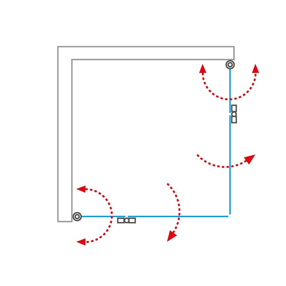 - Způsob otevírání: rohový vstup, otvírání dovnitř i ven