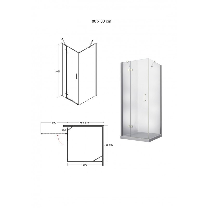 - 80 × 80 × 195 cm (montážní rozměr 78,5 - 81 cm)
