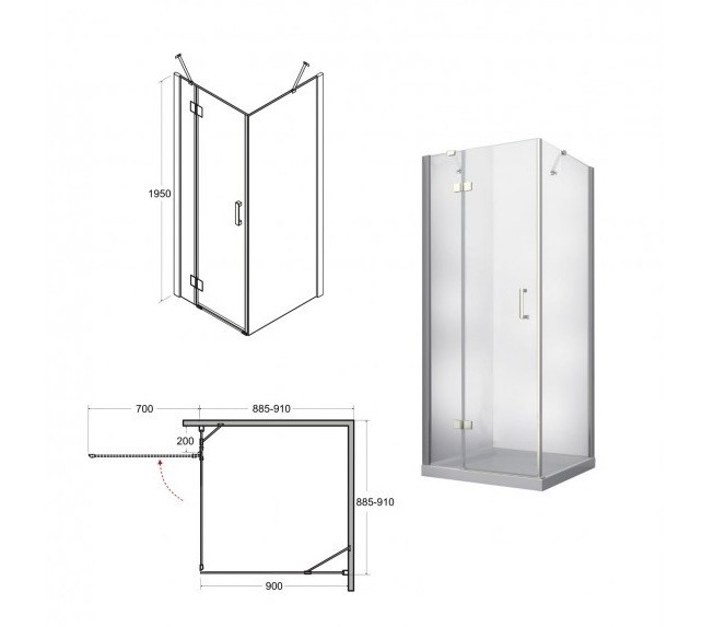 - 90 × 90 × 195 cm (montážní rozměr 88,5 - 91 cm)