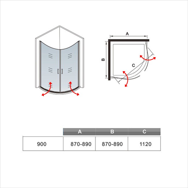 Rozměry: 88-90x88-90x195 cm