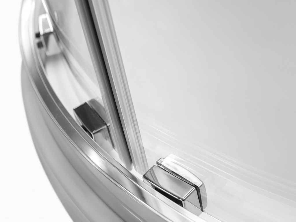Čtvrtkruhový sprchový kout MODERN CHROM 190 vyniká kvalitním zpracováním hliníkového rámu v barvě lesklého chromu, který spolu s magnetickým dovíráním, zajistí jeho dokonalou těsnost. Maximální bezpečí zajistí bezpečnostní sklo (6 mm) a lehký posun ložiskové pojezdy. Sprchový kout je vhodný pro nestandardní prostory koupelen a pro menší koupelny.  Můžete si vybrat ze tří druhů skleněných výplní (bezpečnostní 6 mm sklo čiré, frost, kouřové - fume) a sklo je opatřeno povrchovou úpravou skla Besco ProClean pro jednodušší údržbu.