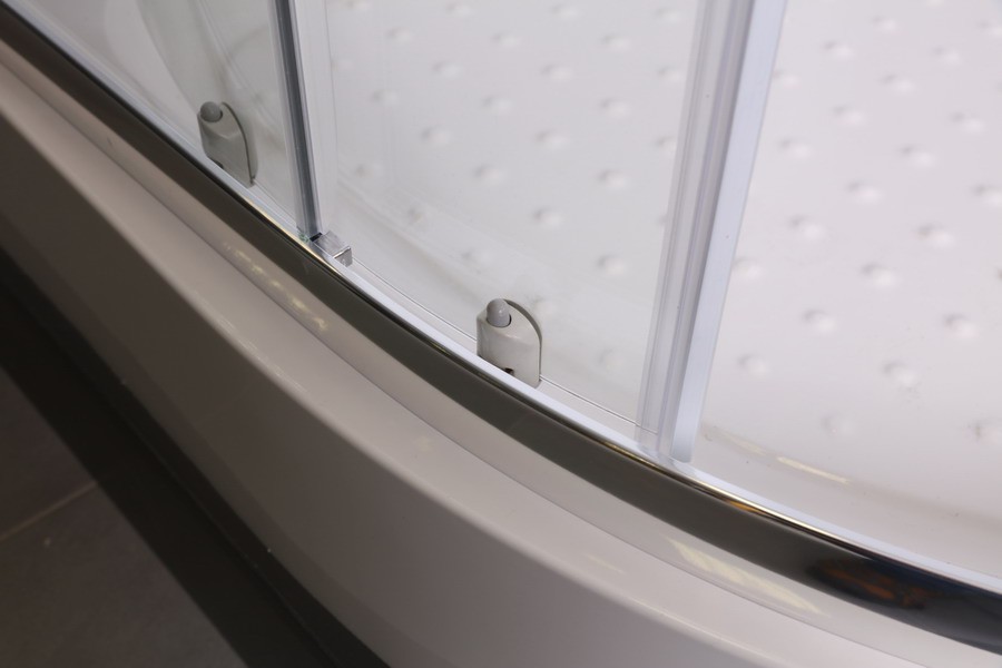 Čtvrtkruhový sprchový kout BILBAO, značky. Skvělý sprchový kout s vaničkou se sifonem, vyniká stabilními hliníkovými profily nepodléhající korozi v barvě chromu. Dokonalou těsnost sprchového koutu zajistí bezpečnostní sklo čiré (5 mm) a magnetické dovírání dveří. Tichý posun pomocí ložiskových pojezdů s vysokou životností (spodní vymačkávací pro snazší údržbu).
