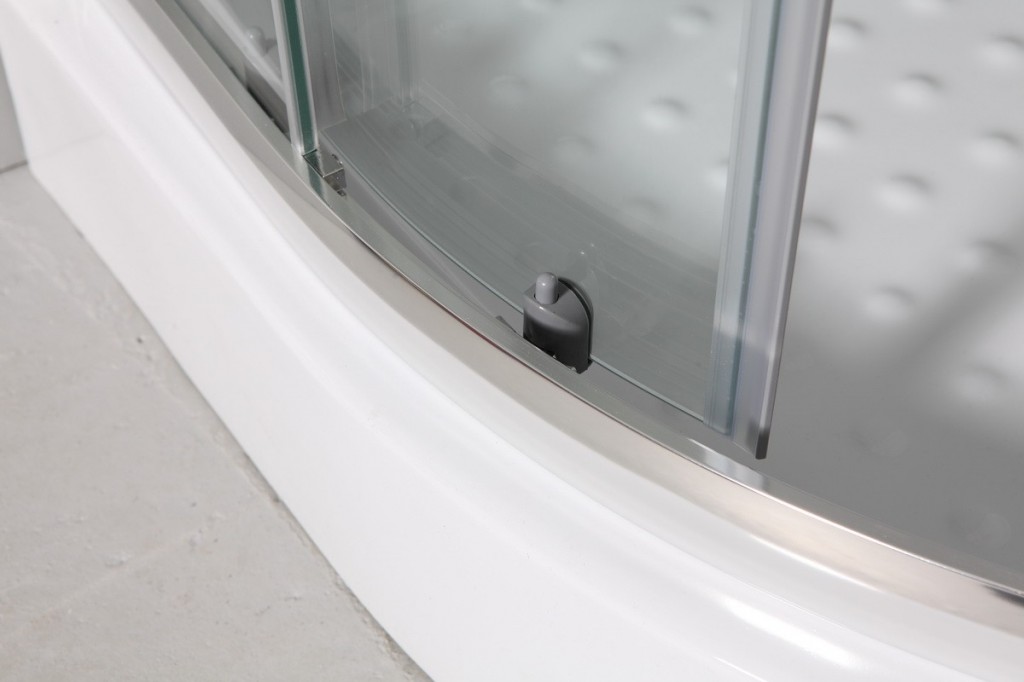 Čtvrtkruhový atypický sprchový kout IBIZA II vyniká kvalitním zpracováním hliníkového rámu v barvě chromu, který spolu s magnetickým dovíráním, zajistí jeho dokonalou těsnost. Maximální bezpečí zajistí tvrzené sklo (5 mm) a lehký posun ložiskové pojezdy. Sprchový kout s vaničkou je vhodný pro nestandardní prostory koupelen a pro menší koupelny.