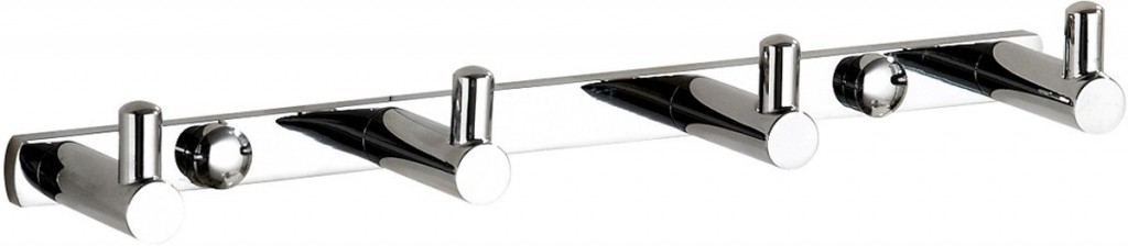 Čtyř místný háček háček s uchycením na stěnu je vyrobený z mosazi. Povrchová úprava je odolná proti korozi a je dostupná v barevném provedení: chrom, zlato a černá.