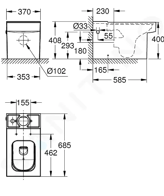 WC sedátko a nádrž není součástí balení.