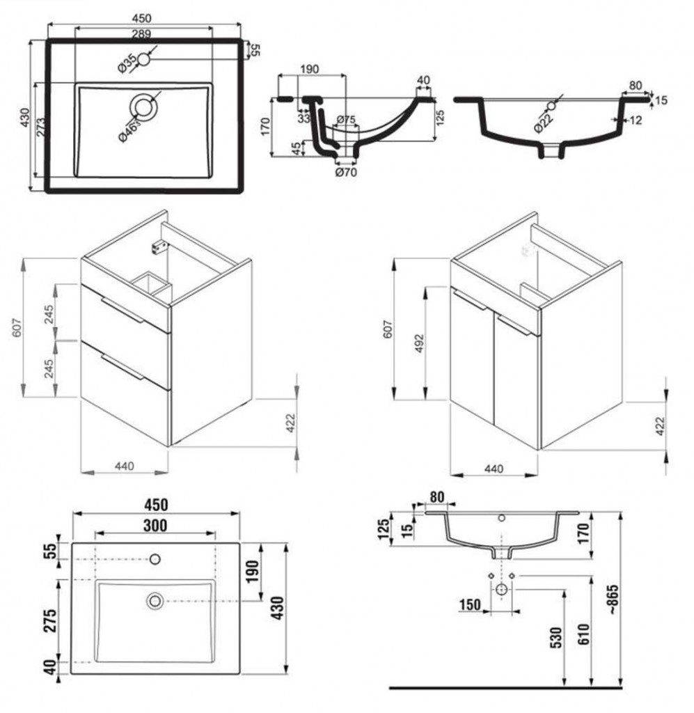 - umyvadlo 450 x 430 mm