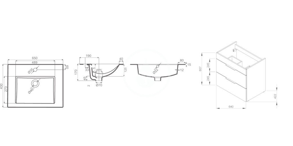 Závěsná skříňka s umyvadlem a přepadem