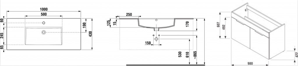 - rozměry umyvadla 1000 x 430 mm, s velkými odkládacími plochami