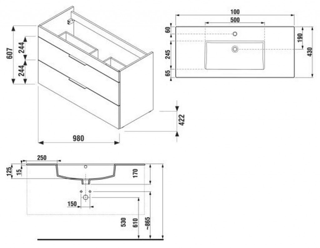 - rozměr umyvadla 1000 x 430 mm, s velkými odkládacími plochami
