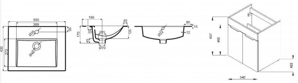 - umyvadlo 550 x 430 mm