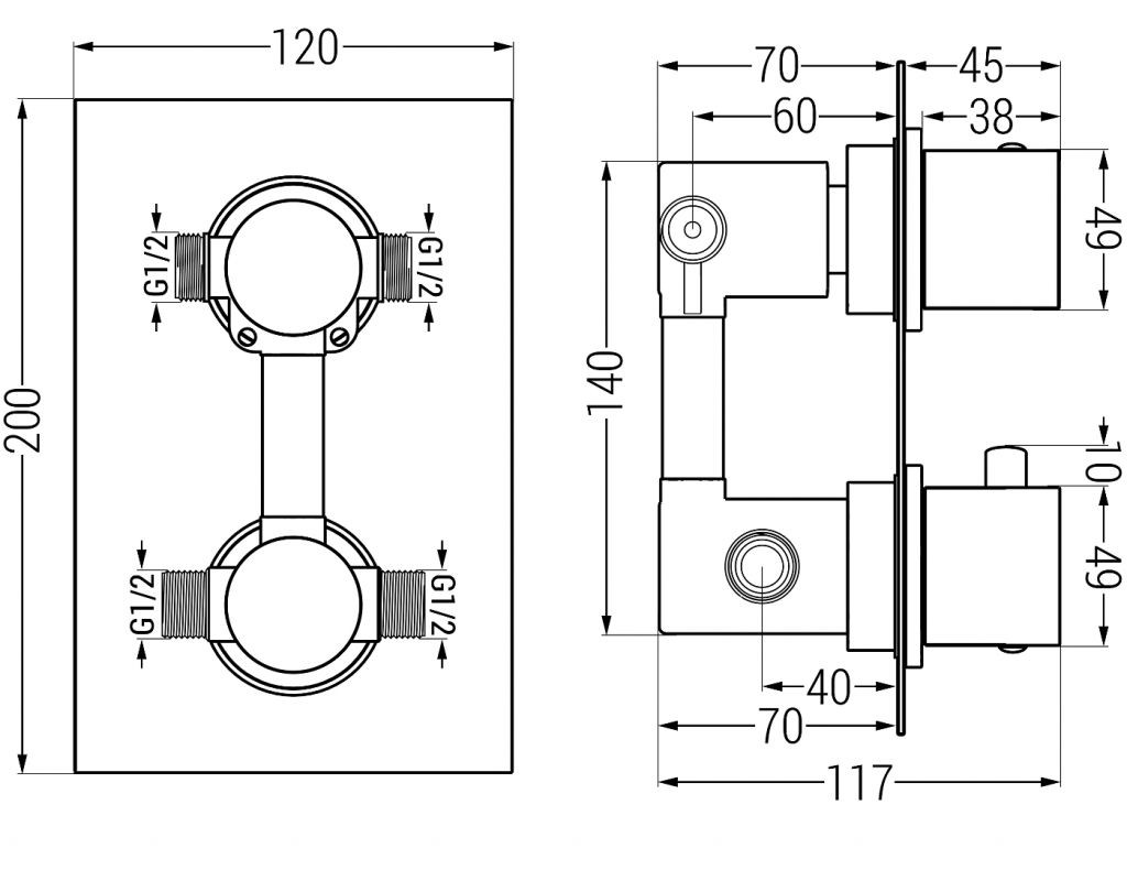 • připojení sprchy: 2x G 1/2 "vstup a 2x G 1/2" výstup