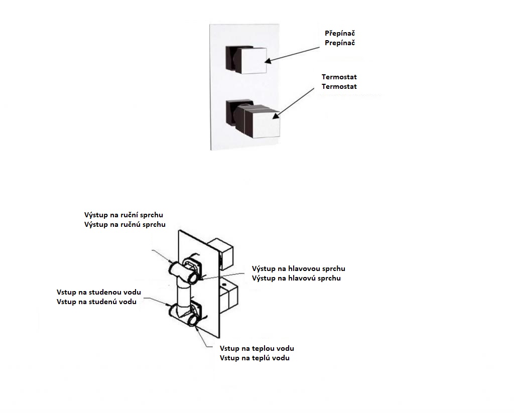 - připojení sprchy: 2x G 1/2 "vstup a 2x G 1/2" výstup