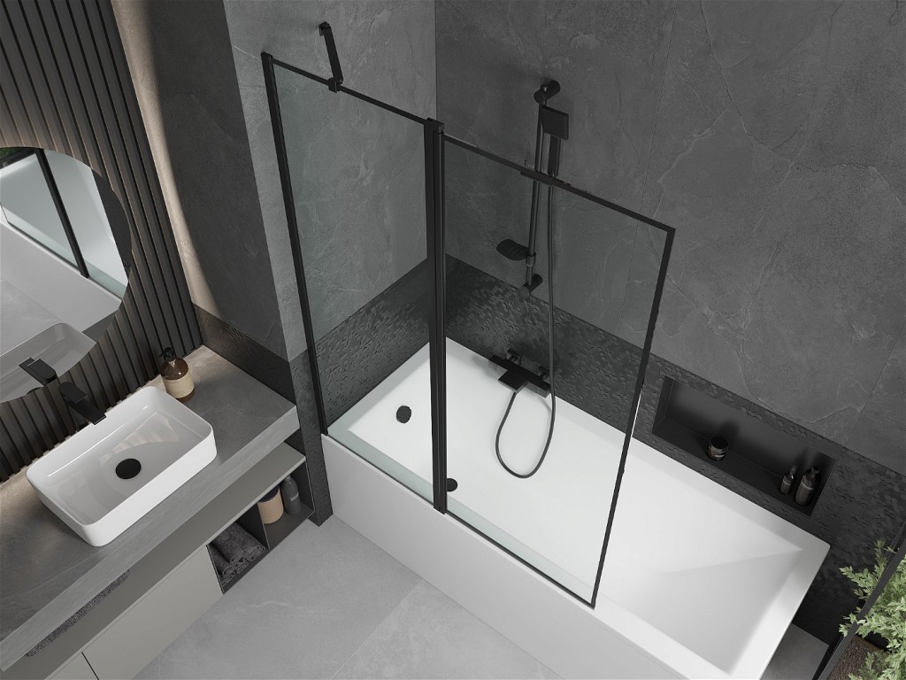 Zástěna se skládá ze dvou částí - pevné stěny a pohyblivého křídla
