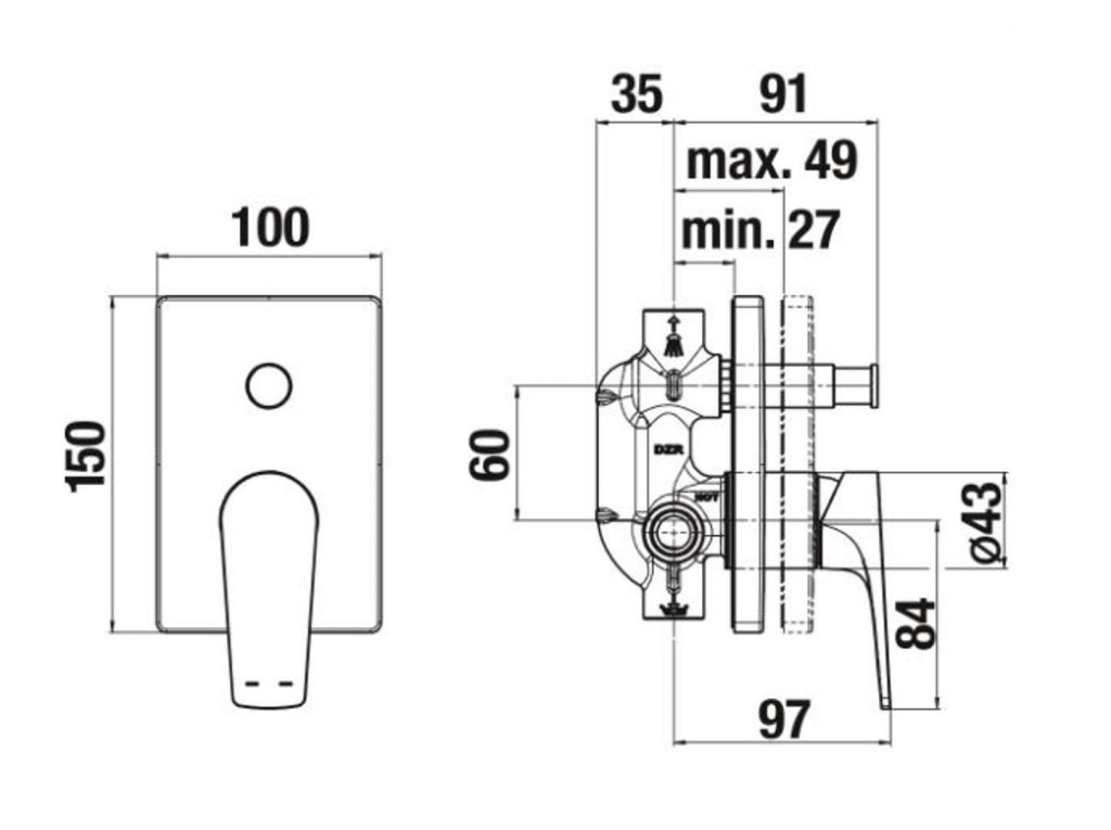 Vanová-sprchová podomítková páková baterie bez sprchové sady