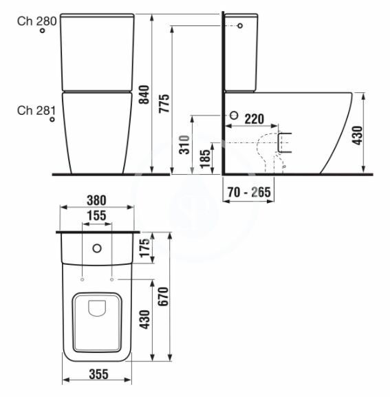 Splachovací nádržka a WC sedátko nejsou součástí balení, doporučujeme dokoupit zvlášť.