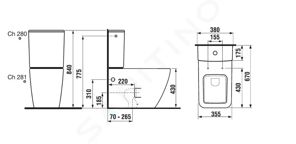 WC kombi mísa kapotovaná ke stěně pro nádrž s bočním napouštěním