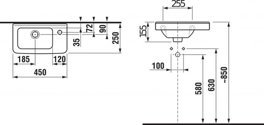 Umývátko asymetrické s přepadem s úpravou Jika Perla, pravá varianta